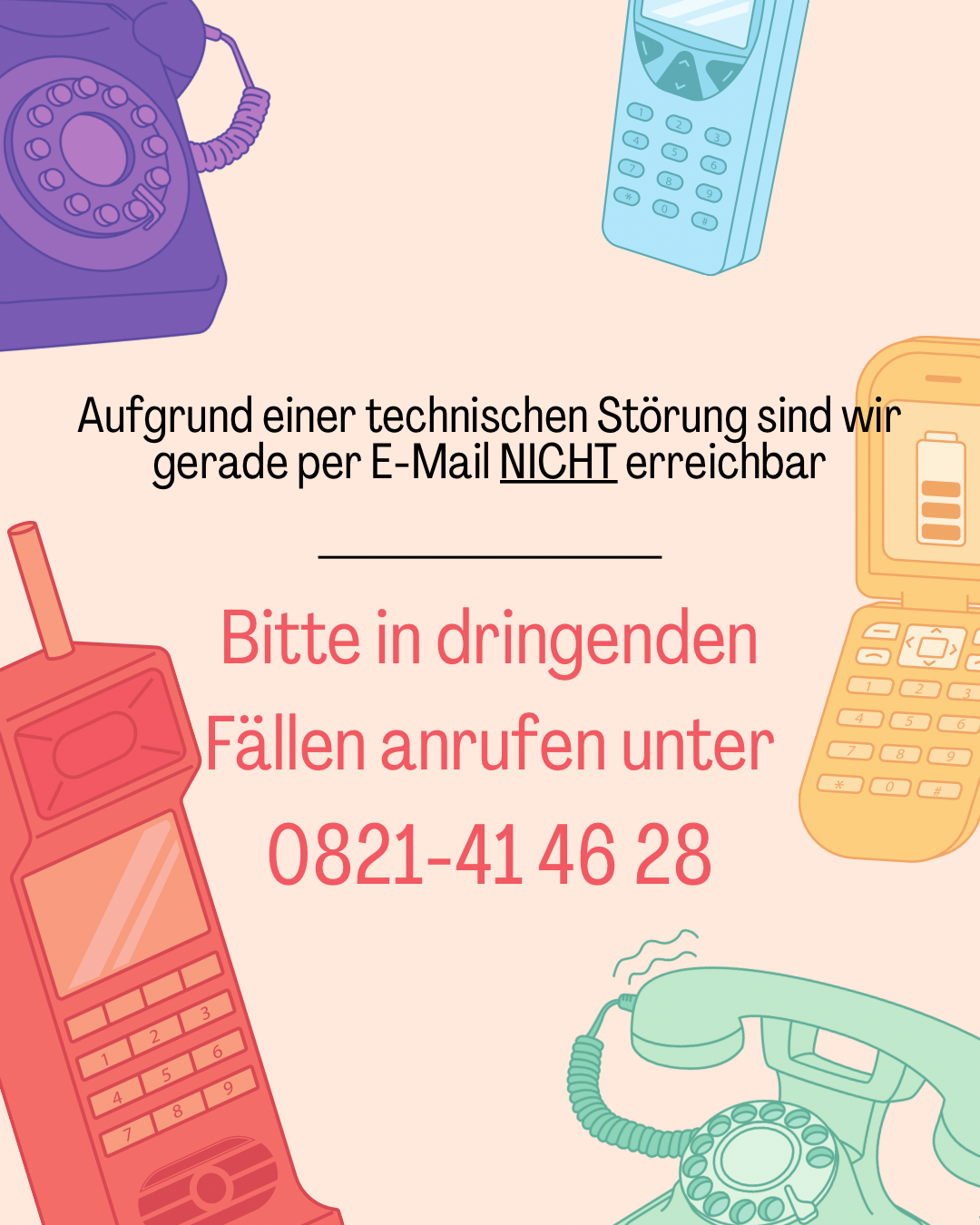 Kontakt bzw. Bestellungen und Aufträge derzeit nur telefonisch unter 0821 / 41 46 28